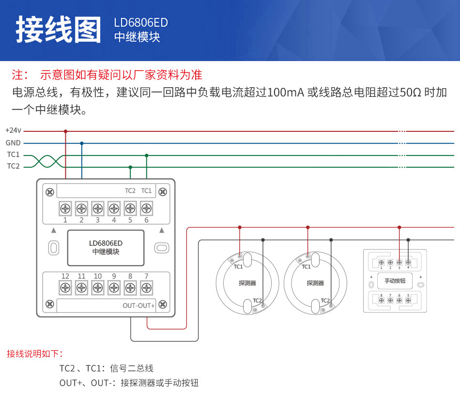 3、建議同一回路中負(fù)載電流超過100mA或線路總電阻超過50Ω時(shí)加一個(gè)中繼模塊。