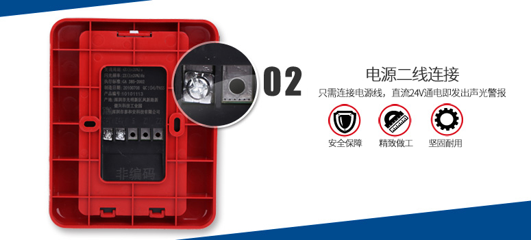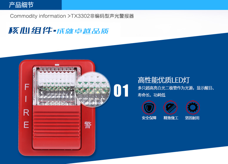 TX3302聲光警報(bào)器(以下簡(jiǎn)稱(chēng)聲光警報(bào)器),是一種安裝在現(xiàn)場(chǎng)的聲光報(bào)警設(shè)備。采用高亮度的LED光源,聲光警報(bào)器啟動(dòng)后發(fā)出強(qiáng)烈的聲光報(bào)警信號(hào),以達(dá)到提醒現(xiàn)場(chǎng)人員注意的目的。