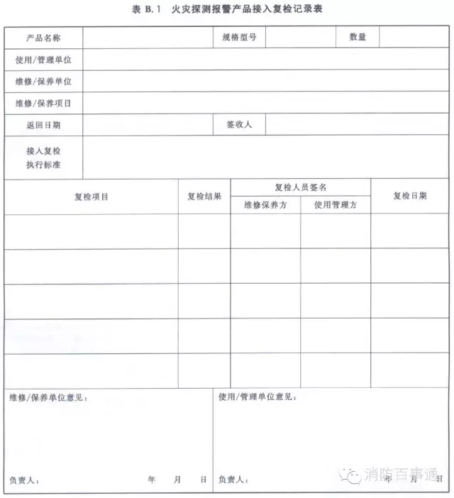 附錄B火災(zāi)探測(cè)報(bào)警產(chǎn)品接入復(fù)檢記錄表