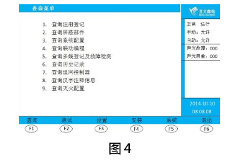 ① 按“功能”鍵,進(jìn)入選項(xiàng)菜單,按“F1 查詢”鍵,輸入二級密碼,按“確認(rèn)”鍵,進(jìn)入查詢菜單界面(圖4)。