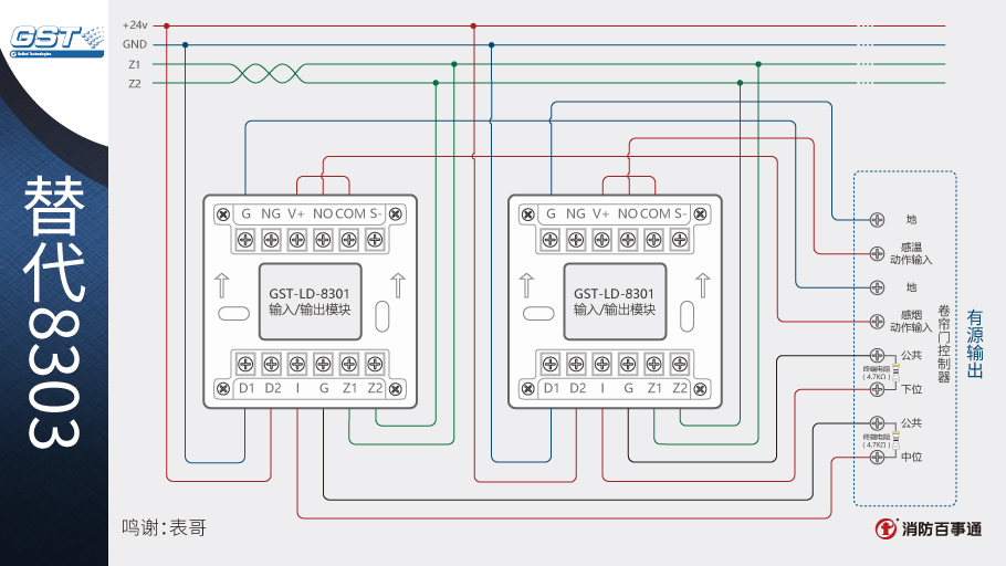 1、海灣8301模塊可以替代海灣的8303模塊控制防火卷簾,兩個(gè)8301模塊相當(dāng)于1個(gè)8303模塊。