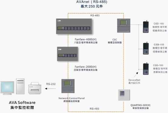 在這個案例中主要使用了AVA(艾華)的FANFARE-2000四區(qū)型極早期煙霧偵測主機,這款偵測主機有以下特點: